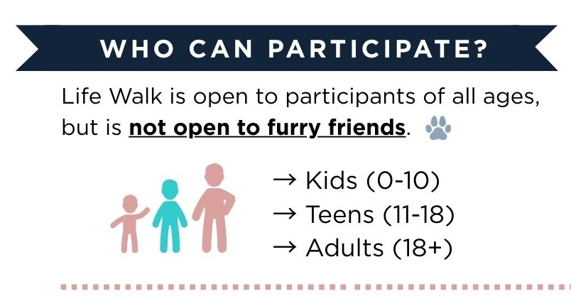 Life Walk is our annual fundraising event for the whole family! It includes fun, kid-friendly activities, and amazing prize incentives for all age groups. This is a excellent way to involve the younger generations in the pro-life movement and instill in their hearts that every human life has value. Children, teens, and the whole family can make an impact and protect the vulnerable by raising donations to help bring hope to women in our state by supporting the CPC Metro! Join over 75 teams that walk with us every year!